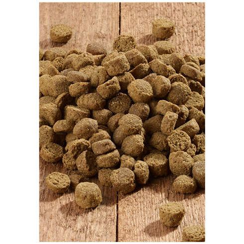 Meso i nusproizvodi životinjskog porekla (brašno od živine, goveđe brašno), riba i riblji nusproizvodi (brašno od lososa, brašno od morske ribe), žitarice (kukuruz, ječam), nusproizvodi od povrća (celuloza, kriške sušene šećerne repe), ekstrakti biljnih proteina (protein krompira*), ulja i masti, seme (laneno seme), jaja i proizvodi od jaja (celo jaje u prahu), minerali, kvasac*, alge*, lekovito bilje*, koren cikorije* (izvor inulina).